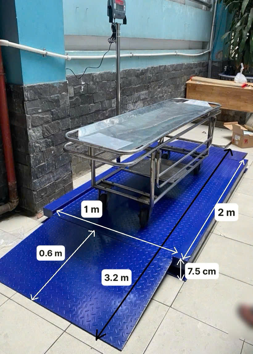- Kích thước cả cân và dốc: Dài x rộng x cao (3.2 x 1.2 x 0.075) m.