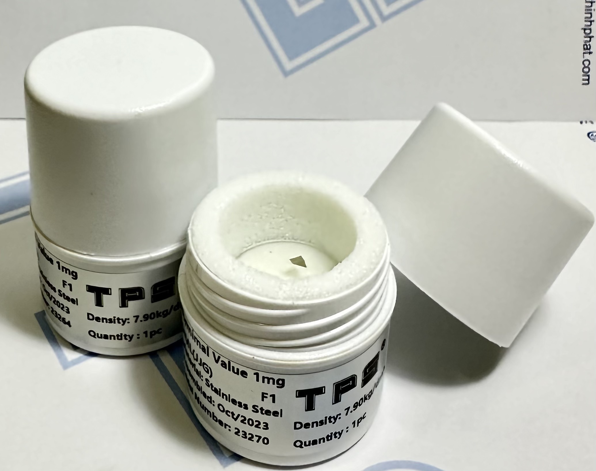 Quả cân F1-1mg chất liệu 100% inox 304 (stainless steel weight) có hộp bảo quản, không hốc điều chỉnh, tiêu chuẩn đo lường quốc tế OIML, tiêu chuẩn đo lường Việt Nam ĐLVN 50:2009 Nhập khẩu và phân phối bởi CÔNG TY CỔ PHẦN CÂN ĐIỆN TỬ THỊNH PHÁT có địa chỉ trụ sở chính tại số 57 Đường Nguyễn Văn Thương, Phường 25, Quận Bình Thạnh, TP.Hồ Chí Minh. Quý khách có nhu cầu xin liên hệ điện thoại (028) 62.888.666 di động có Zalo 0915.999.111 hoặc 0908.444.000.