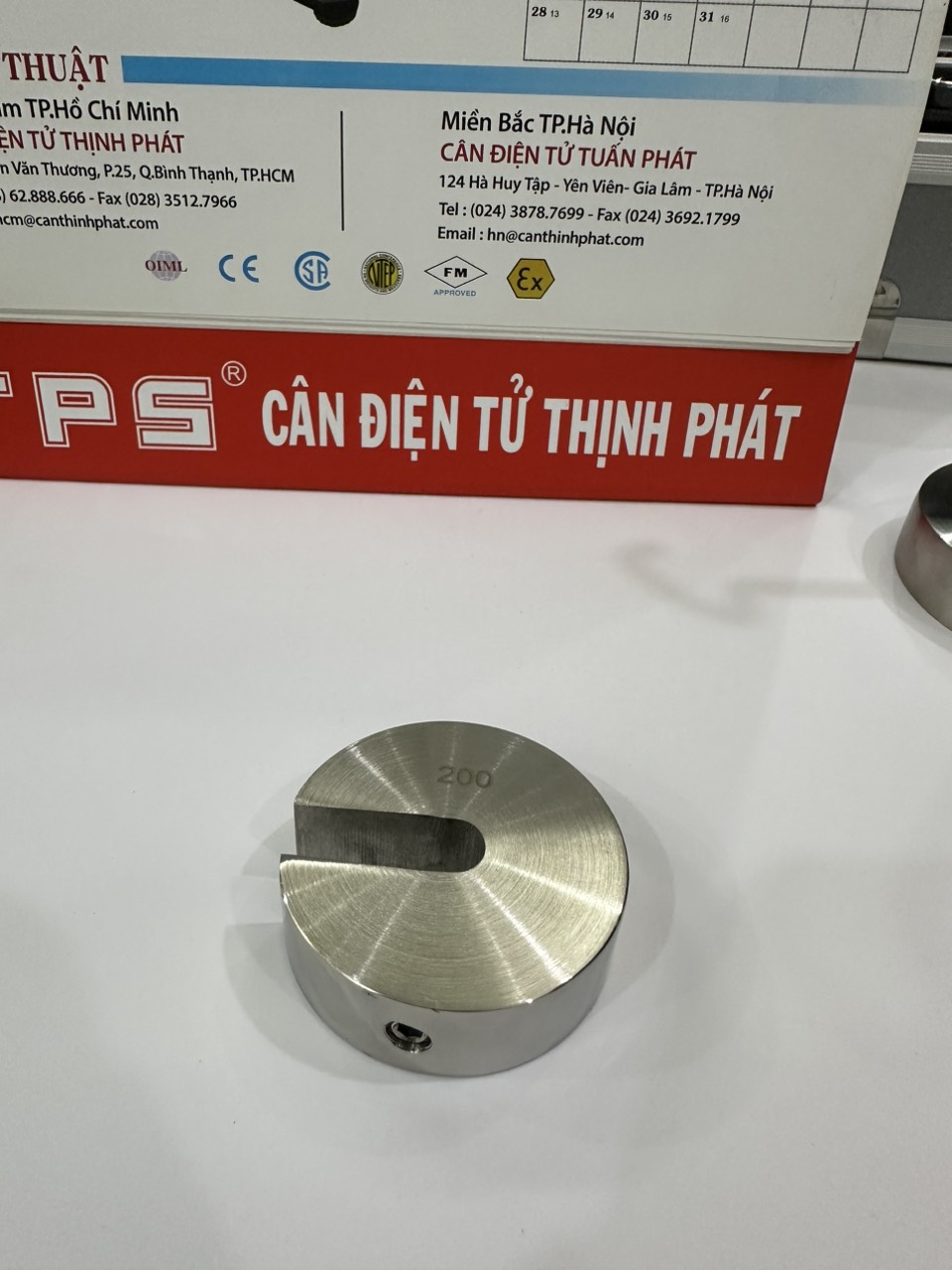 Quả cân móc treo F1-200g chất liệu inox 304, không hốc điều chỉnh, theo tiêu chuẩn đo lường quốc tế OIML, tiêu chuẩn đo lường Việt Nam ĐLVN 50:2009, hiệu chuẩn chuẩn đo lường theo ĐLVN 286:2015 Nhập khẩu và phân phối bởi TPS có địa chỉ tại số 57 Đường Nguyễn Văn Thương, Phường 25, Quận Bình Thạnh, TP.Hồ Chí Minh. Quí khách hàng có nhu cầu xin liên hệ điện thoại (028) 62.888.666 di dộng có zalo 0915.999.111 hoặc 0908.444.000