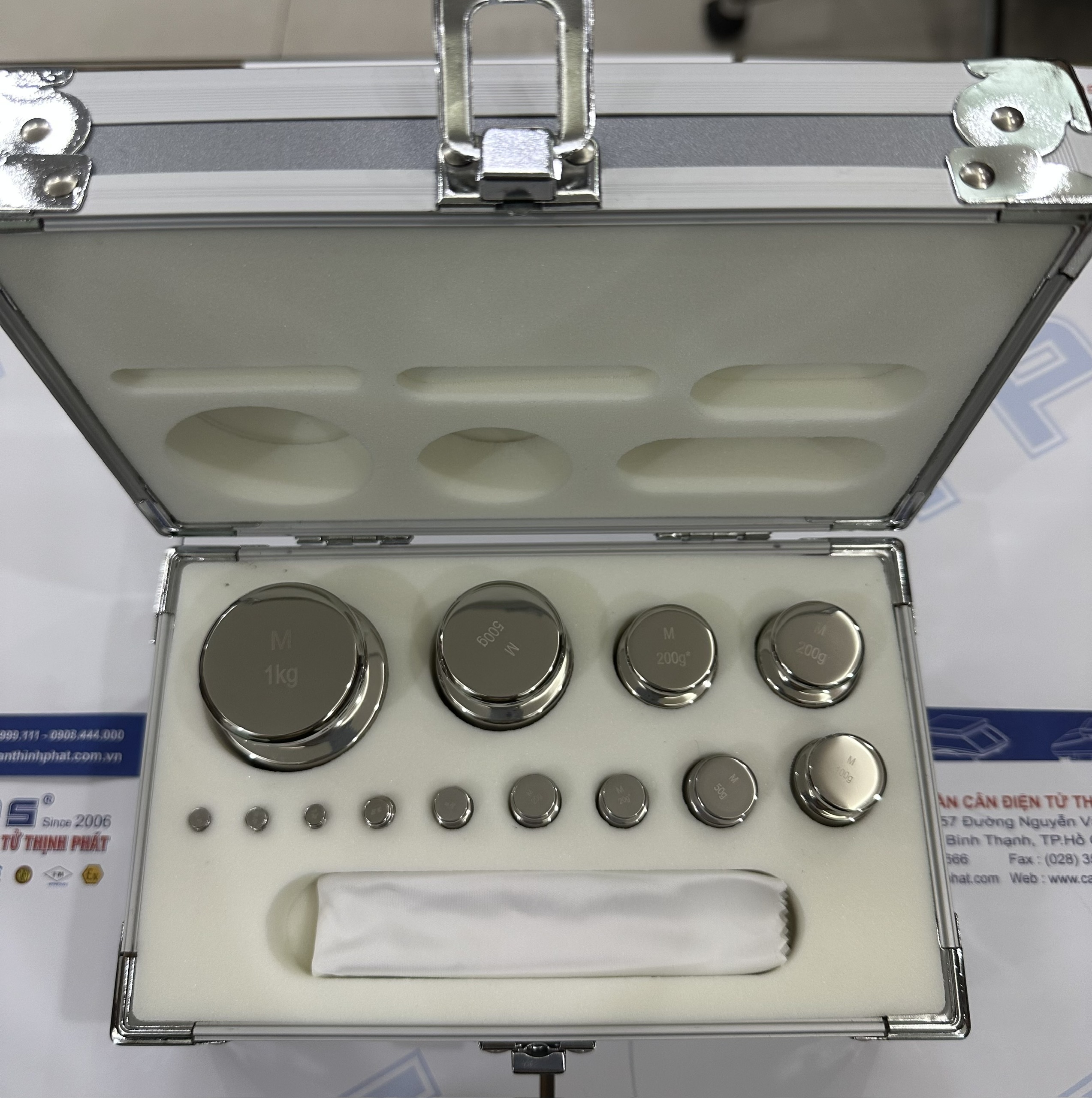 Bộ quả cân M1-(1g-1kg) Chất liệu inox 304 (stainless steel), có hốc điều chỉnh, theo tiêu chuẩn đo lường quốc tế OIML R111, tiêu chuẩn đo lường Việt Nam ĐLVN 47:2009, hiệu chuẩn chuẩn đo lường theo ĐLVN 286:2015 Nhập khẩu và phân phối bởi TPS có địa chỉ tại số 57 Đường Nguyễn Văn Thương, Phường 25, Quận Bình Thạnh, TP.Hồ Chí Minh. Quý khách hàng có nhu cầu xin liên hệ điện thoại (028) 62.888.666 di dộng có zalo 0915.999.111 hoặc 0908.444.000