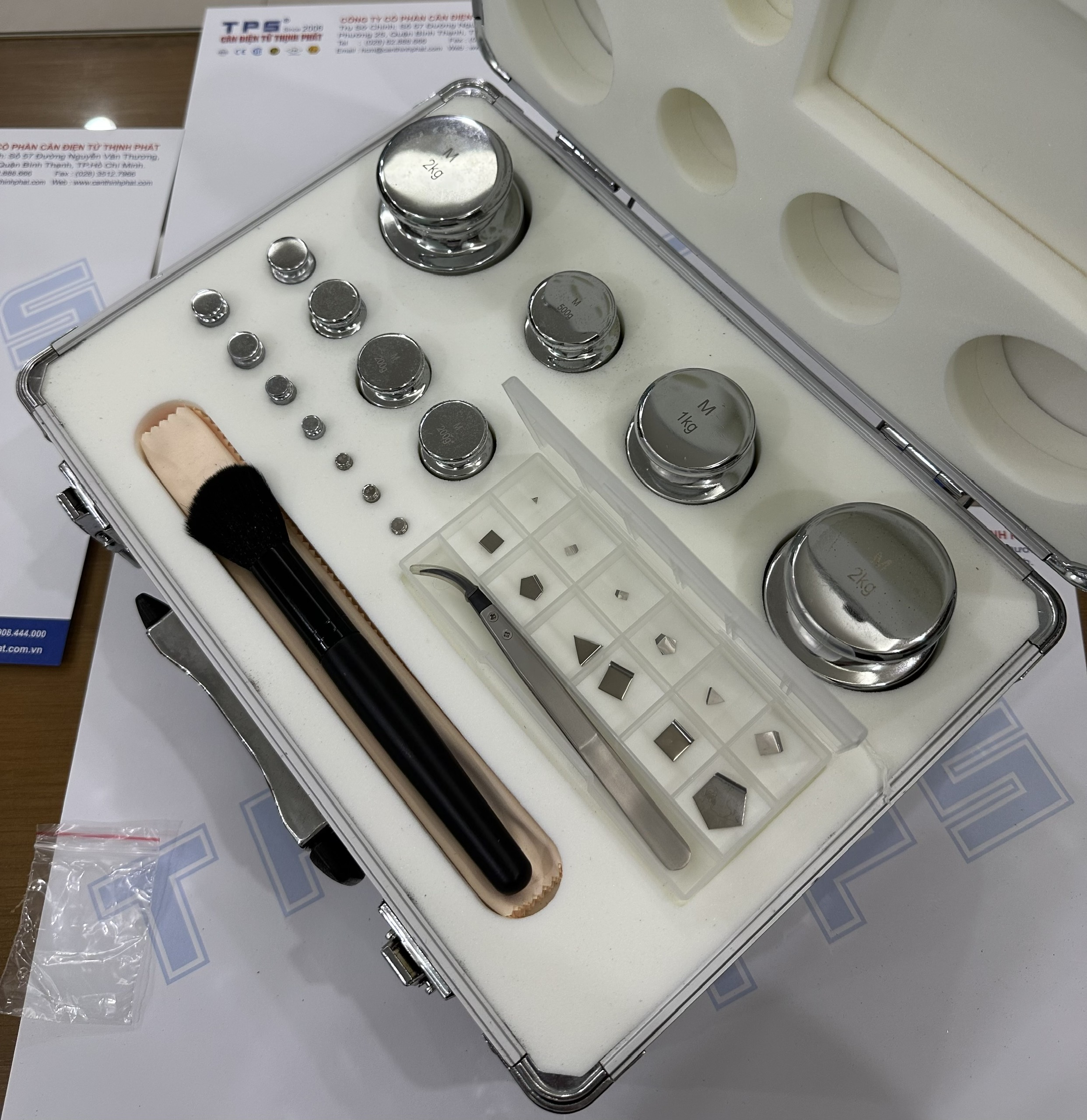 Bộ quả cân M1-(1mg-2kg) chất liệu thép si mạ (chrome iron weight), có hốc điều chỉnh, theo tiêu chuẩn đo lường quốc tế OIML R111, tiêu chuẩn đo lường Việt Nam ĐLVN 47:2009, hiệu chuẩn chuẩn đo lường theo ĐLVN 286:2015 Nhập khẩu và phân phối bởi TPS có địa chỉ tại số 57 Đường Nguyễn Văn Thương, Phường 25, Quận Bình Thạnh, TP.Hồ Chí Minh. Quý khách hàng có nhu cầu xin liên hệ điện thoại (028) 62.888.666 di dộng có zalo 0915.999.111 hoặc 0908.444.000