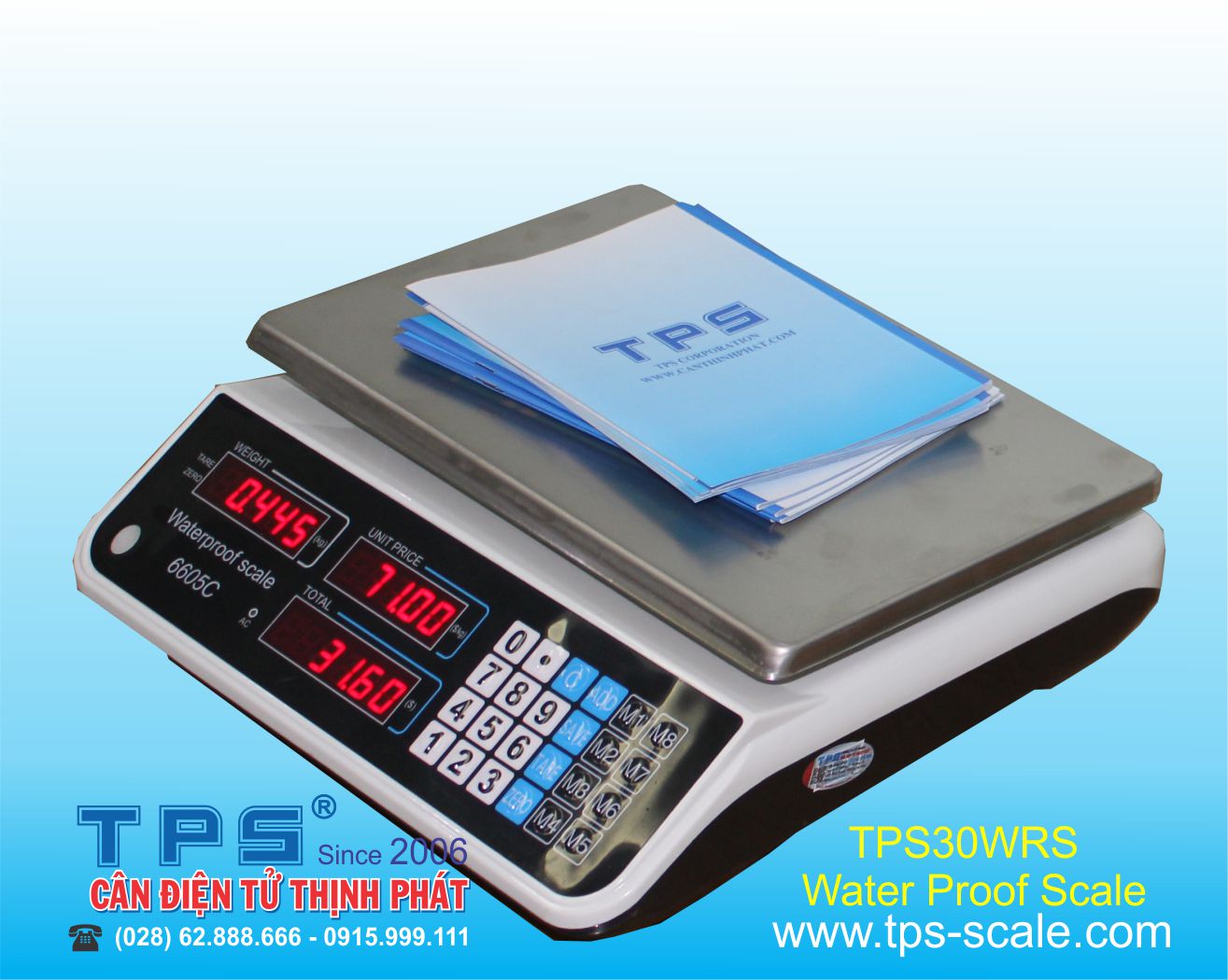 Cân điện tử TPS30WRS do TPS OEM Original Equipment Manufacturer được Công ty Cổ Phần Cân Điện Tử Thịnh Phát có trụ sở chính tại số 57 Đường Nguyễn Văn Thương, Phường 25, Quận Bình Thạnh, TP.Hồ Chí Minh Nhập Khẩu và phân phối,Cân điện tử TPS30WRS đã được phê duyệt mẫu cân nhập khẩu tại tổng cục đo lường chất lượng Việt Nam.