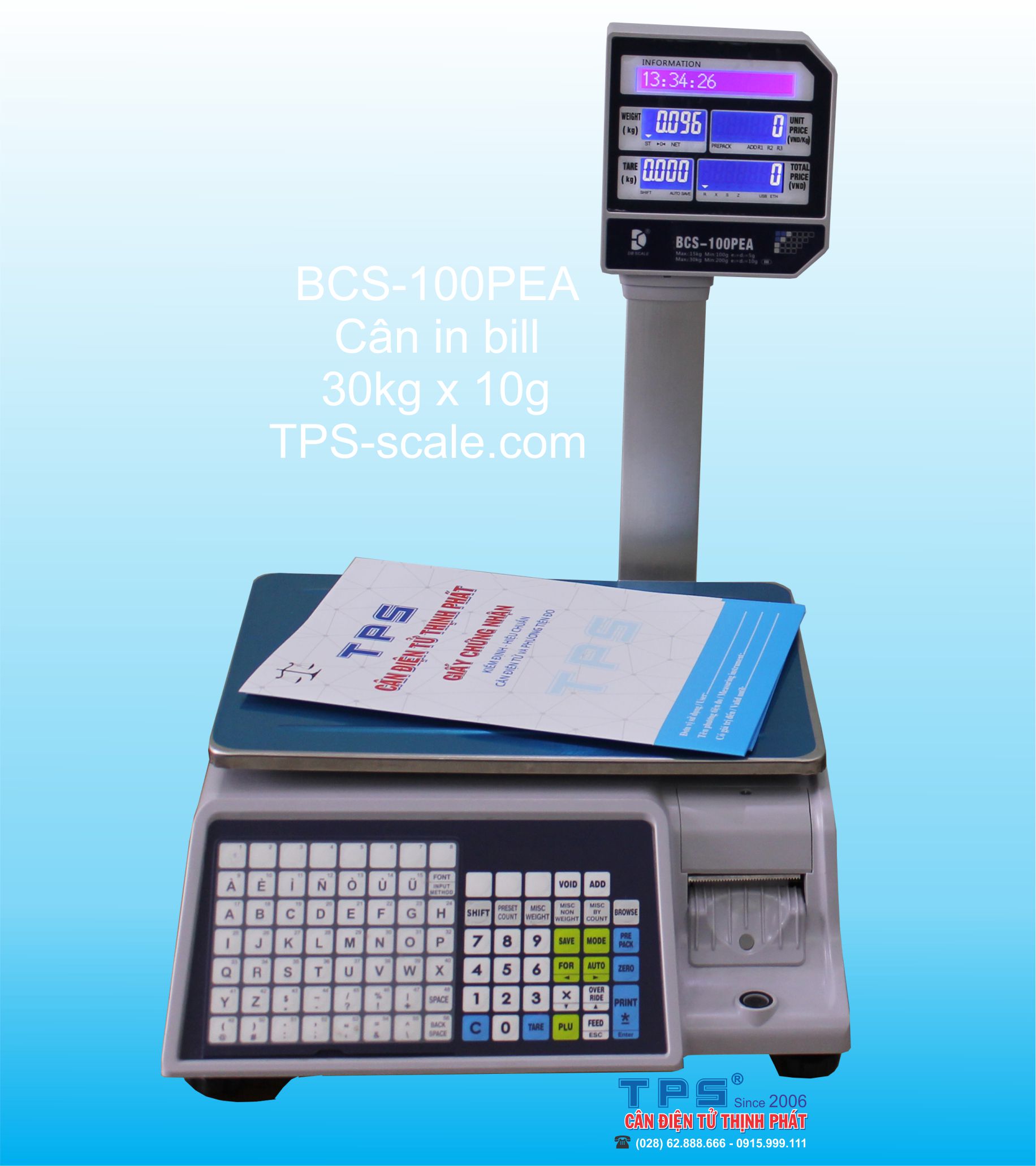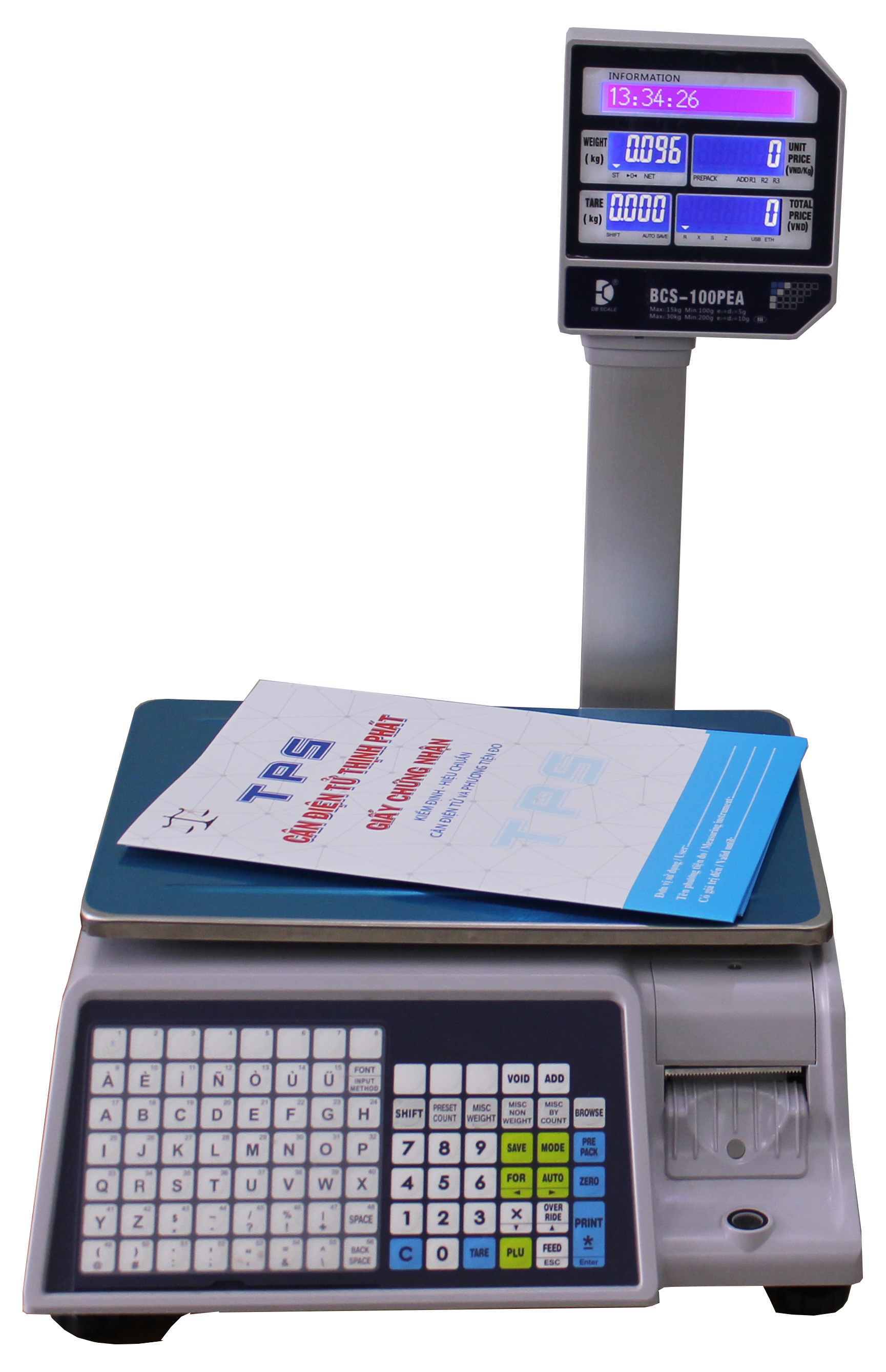 - Cân điện tử BCS 100PEA là mẫu cân tính giá hiện đại nhất hiện nay cân lưu được 999 mã hàng chúng ta có thể nhập mã hàng và giá từ máy vi tính bởi file excell, file word rồi đổ dữ liệu sang cân một cách dễ dàng, cũng có thể nhập tay từ bàn phím của cân, khi muốn thay đổi giá hoặc mã hàng chúng ta sửa rất đơn giản, cân có thể in được tem dán và giấy nhiệt thông thường, người dùng có thể tạo mã vạch cho sản phẩm, mã vạch cho giá rất đơn giản, cân được ứng dụng rộng trong các siêu thị lớn, của hàng tiện lợi, các siêu thị mini với giá thành rẻ nên cân được phân phối nhiều tại Việt Nam, Giấy in dễ mua trên thị trường