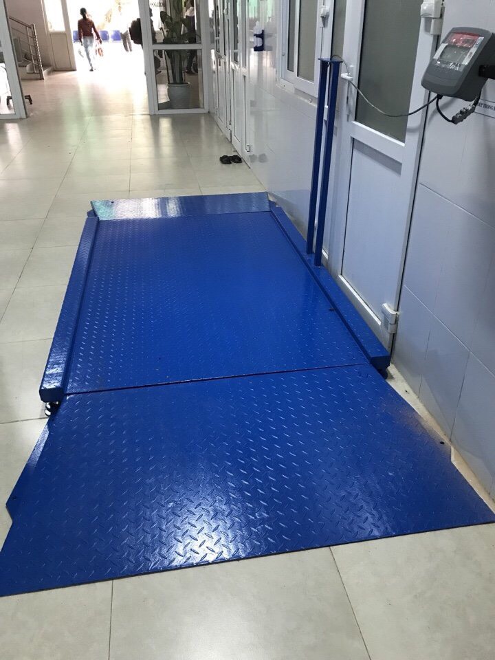 - Mặt bàn cân làm bằng tôn gân chống trượt dày 5 mm.