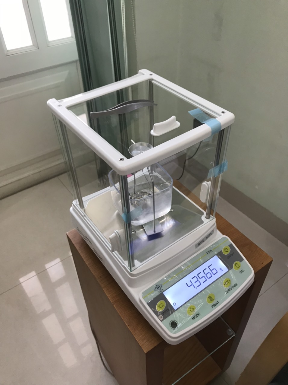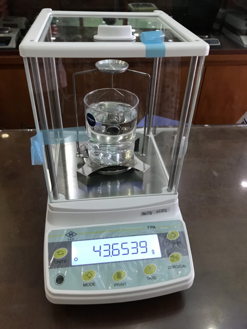 - Cách cân để xác định khối lượng riêng: chúng ta thao tác 02 lần cân, trước tiên cân trên khô (Nghĩa là cân bên trên) sau đó cân trong nước (Nghĩa là cân trong cốt thủy tinh có nước) sau đó cân có đơn vị xác định được tỷ trọng vật cần cân có khối lượng riêng là bao nhiêu.