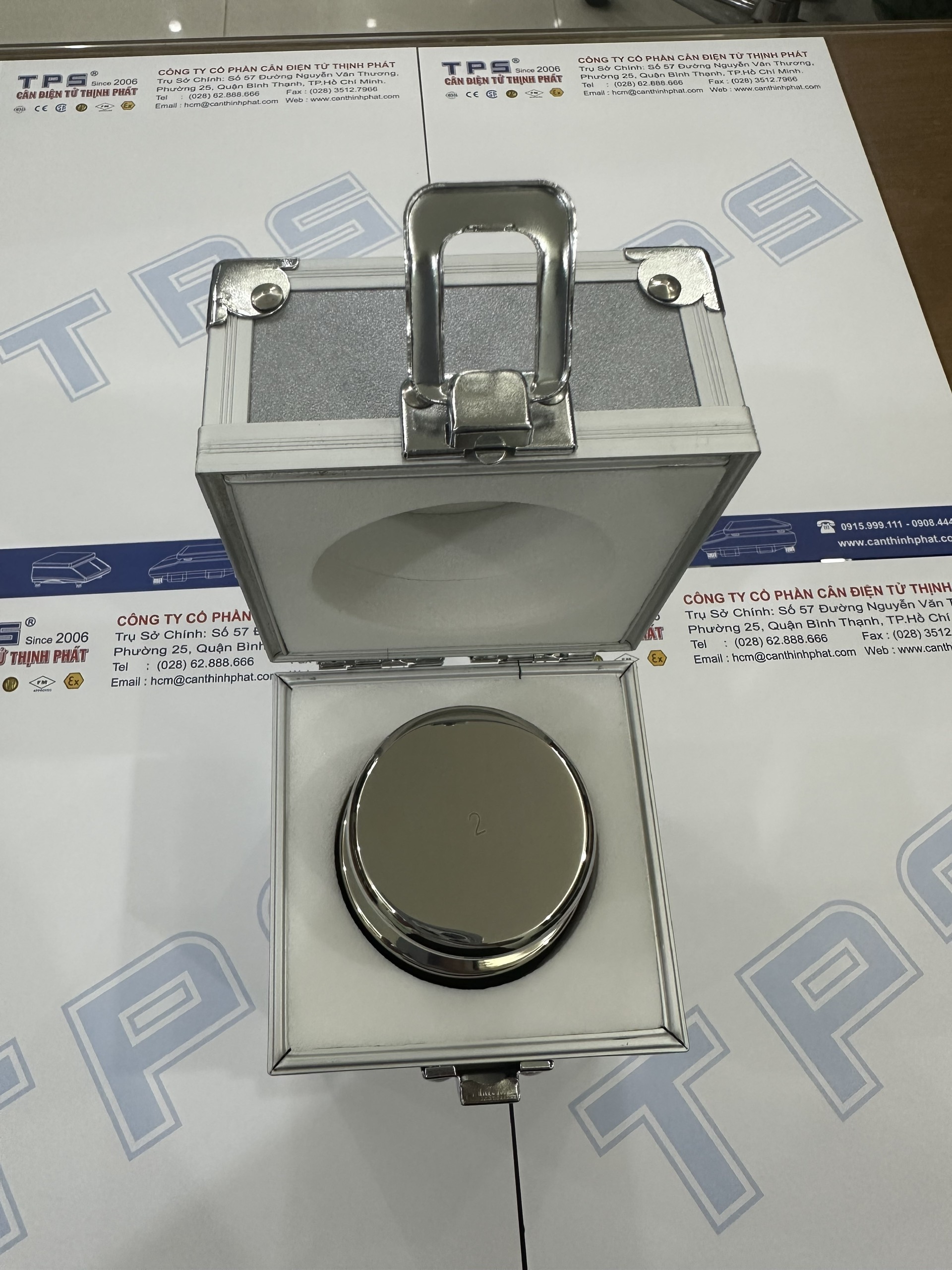 Quả cân F1-2kg chất liệu 100% inox 304 (stainless steel weight) có hộp bảo quản, không hốc điều chỉnh, tiêu chuẩn đo lường quốc tế OIML, tiêu chuẩn đo lường Việt Nam ĐLVN 50:2009 Nhập khẩu và phân phối bởi CÔNG TY CỔ PHẦN CÂN ĐIỆN TỬ THỊNH PHÁT có địa chỉ trụ sở chính tại số 57 Đường Nguyễn Văn Thương, Phường 25, Quận Bình Thạnh, TP.Hồ Chí Minh. Quý khách có nhu cầu xin liên hệ điện thoại (028) 62.888.666 di động có Zalo 0915.999.111 hoặc 0908.444.000.