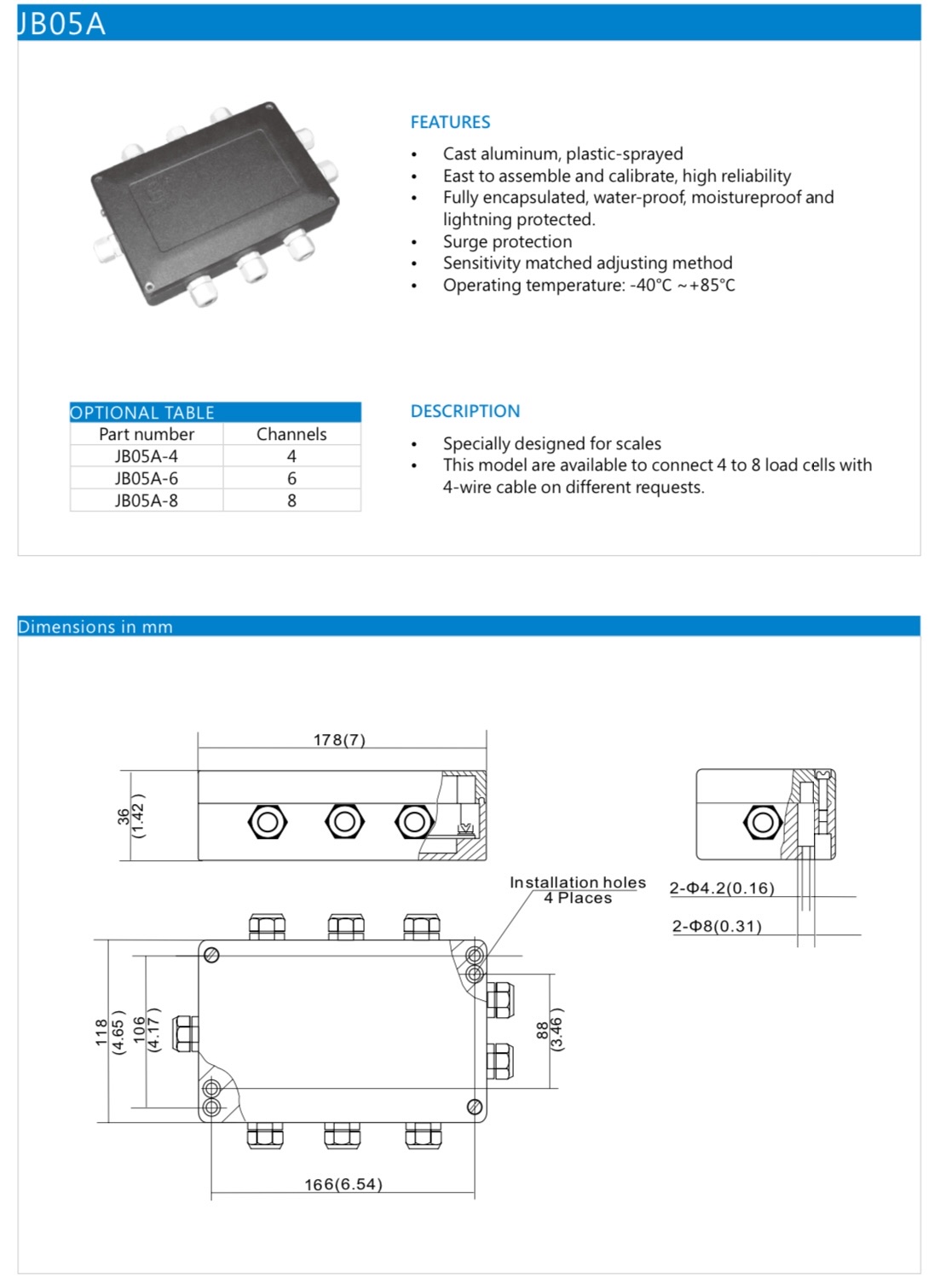 - Hộp nối phù hợp kết nối 4 đến 8 loadcell với cáp 4 dây theo các yêu cầu khác nhau.