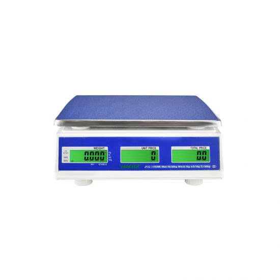 - Cân điện tử JP2S-15K là mẫu cân tính tiền có độ chính xác đến từng gam ứng dụng nhiều trong các cửa hàng bán lẻ, siêu thị, hệ thống quản lý hàng hóa chuyên nghiệp. Khả năng tính tiền chính xác, kết nối máy in, máy tính dễ dàng quản lý dữ liệu, quản lý kho hàng. Cân dùng để cân trọng lượng, cân trừ bì, cân cộng dồn, cân tính tiền, cảm ứng lực điện từ bên dưới. Kết quả hiển thị bằng màn hình LCD lớn, độ tương phản cao dễ dàng thao tác và quan sát.