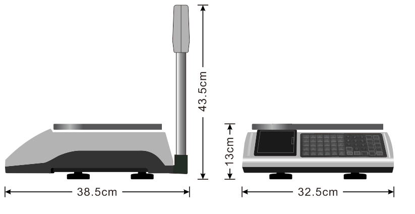 1000 PLU, include the goods name, price and barcode. 60 hotkeys.