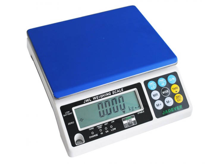 - Cân điện tử JWL-1.5K là mẫu cân thông dụng có độ chính xác đến từng gram ứng dụng trong nhiều ngành như: Cân định lượng, cân trừ bì, đém, cân cộng dồn, cảnh báo giới hạn trên/dưới, cân sử dụng cho sản xuất, đóng gói, QC, kiểm kê hàng nhập/xuất, cảm ứng lực điện từ bên dưới. Kết quả hiển thị bằng màn hình LCD lớn, độ tương phản cao với đèn nền sáng màu xanh lá cây dễ dàng thao tác và quan sát.