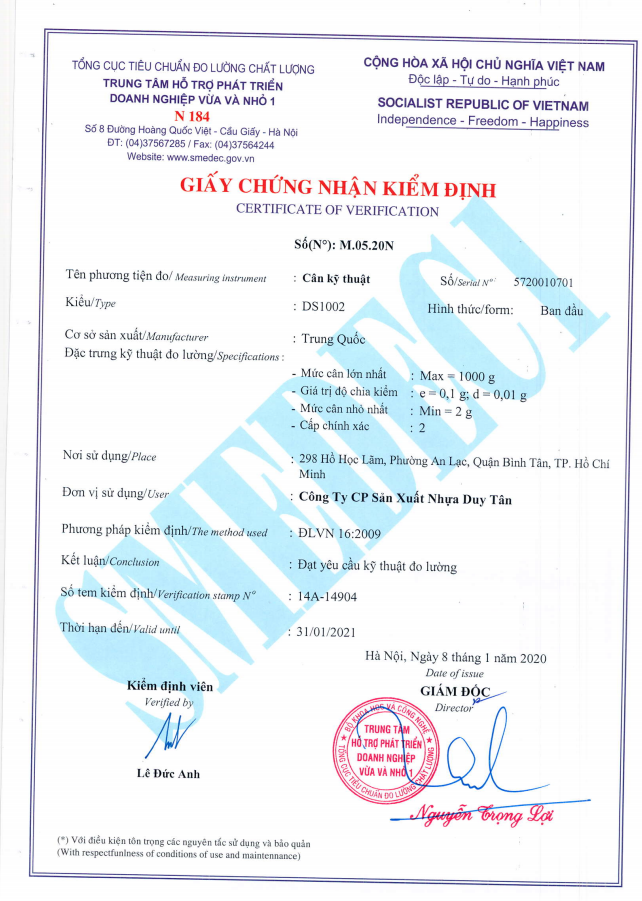Mẫu giấy chứng nhận kiểm định cân kỹ thuật.