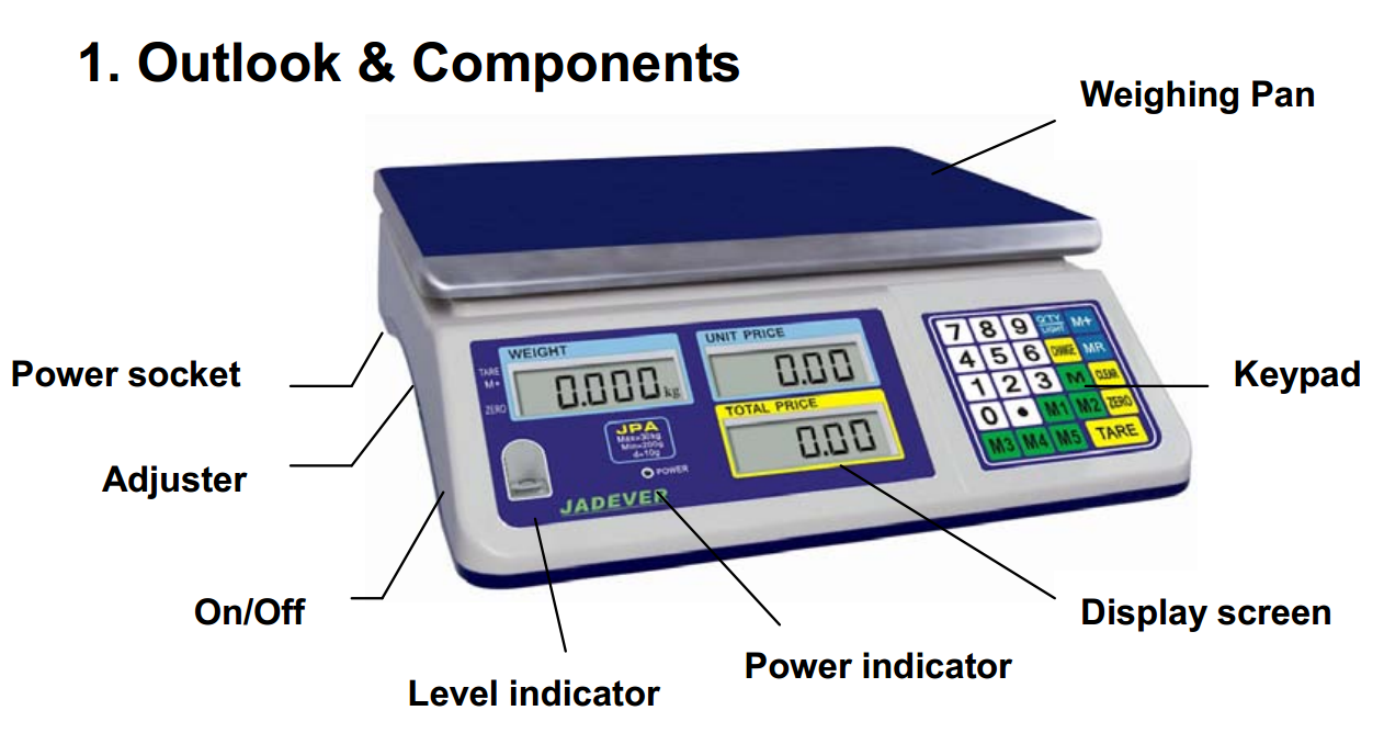 Có 54 Phím từ 0 đến 9 (Dùng để nhập giá) Phím nhớ PLU và Phím zero, trừ bì, xóa, phím chuyển đơn vị.