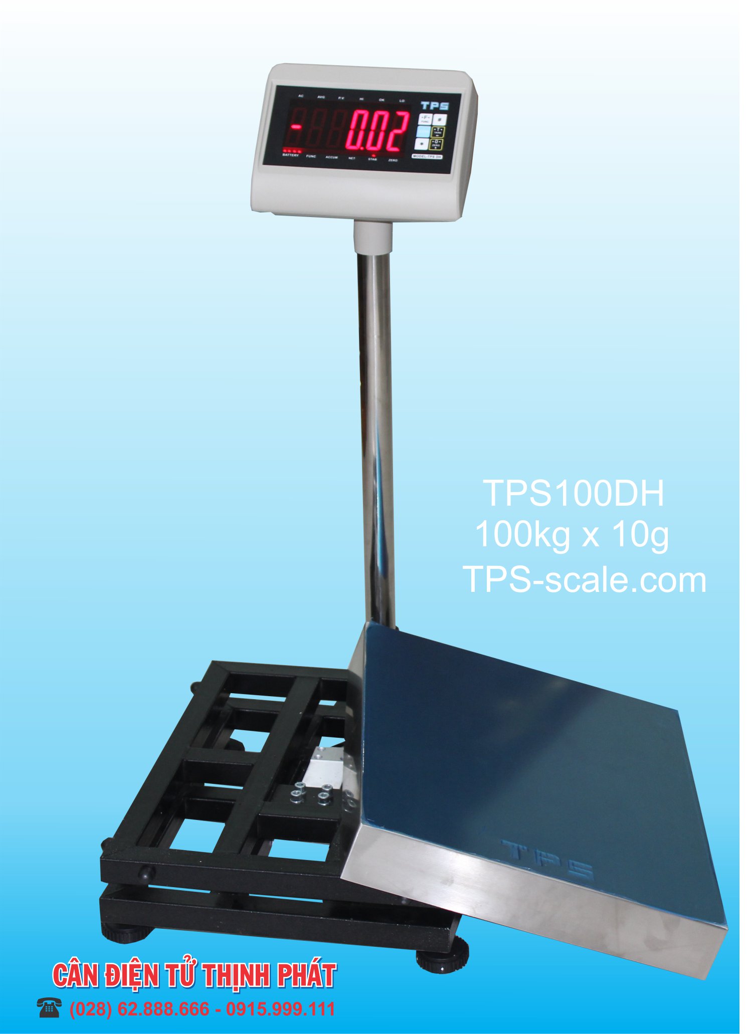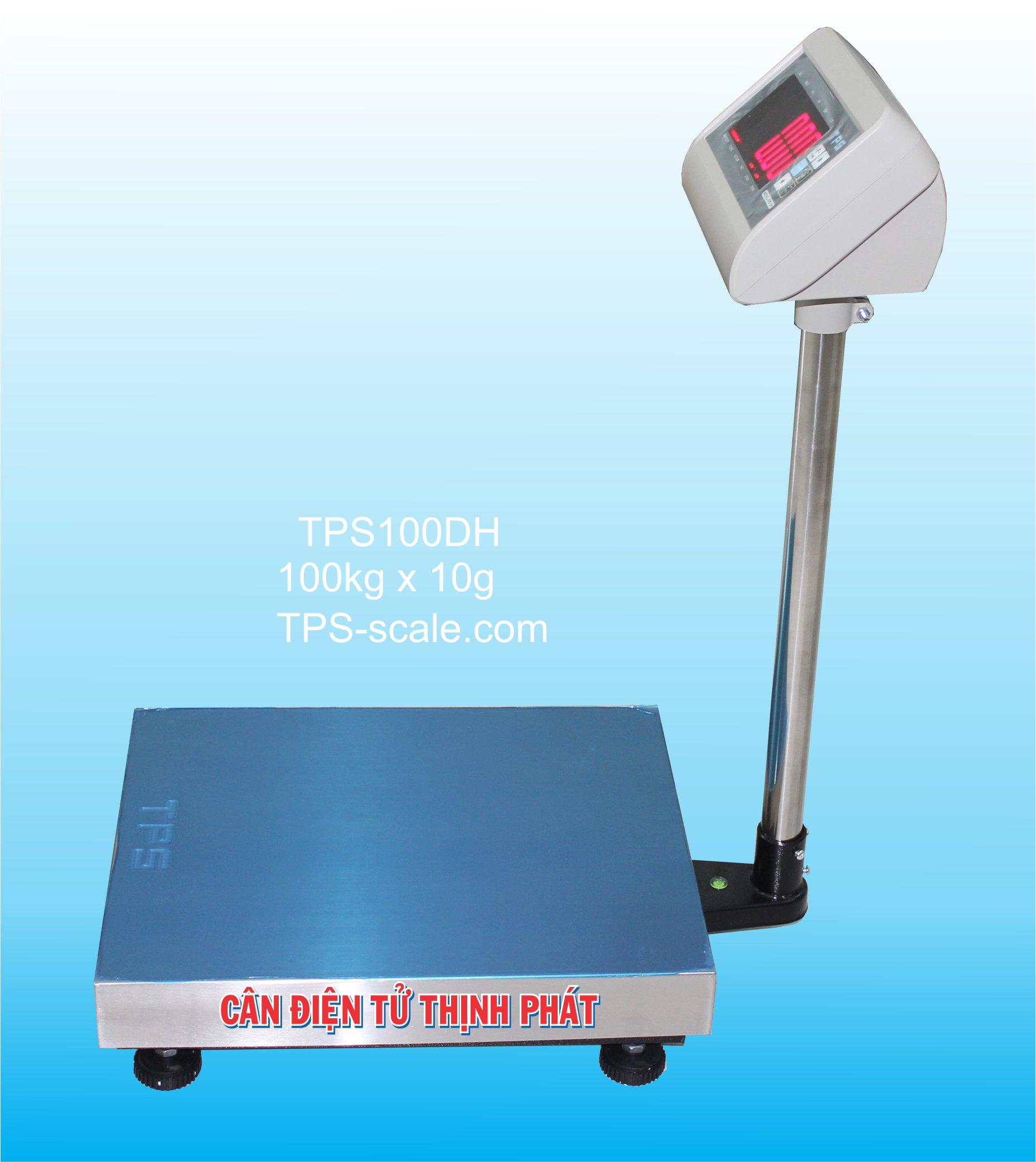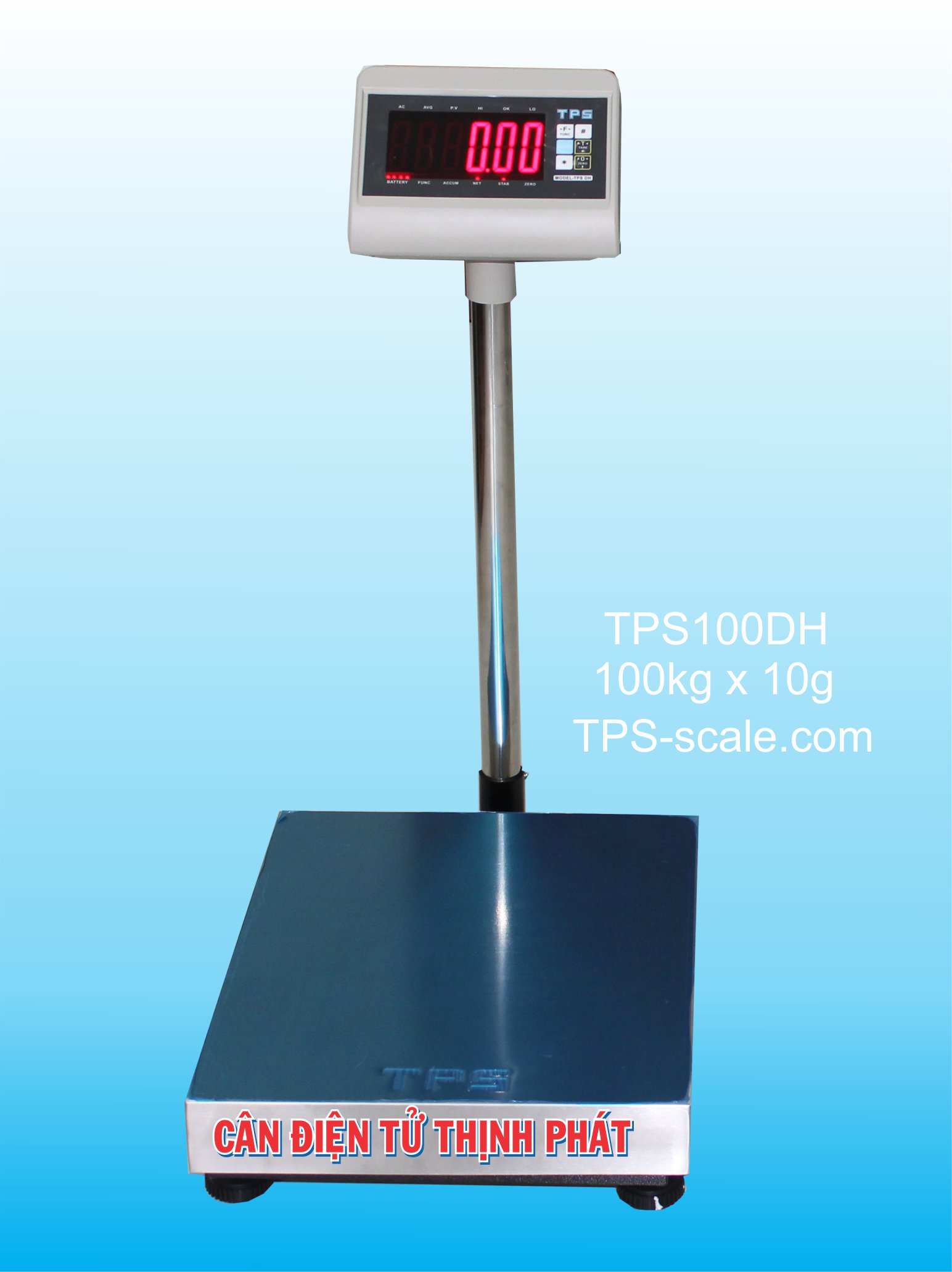 - Cân bàn điện tử TPS100DH Là mẫu cân bàn thông dụng hiện đại do TPS nguyên cứu và lắp ráp phù hợp với thị trường tại Việt Nam, như cân định lượng, cân nông sản, cân sắt thép, cân lúa gạo, cân động vật, khung bàn cân sử dụng thép chịu lực cao thép vuông ba, được sơn tĩnh điện màu đen bóng chống ăn mòn cao, mặt bàn cân sử dụng inox 304 dày 1 ly dập logo TPS rất dễ nhận diện. Cảm ứng lực NA4 do MAVIN sản xuất theo tiêu chuẩn OIMLR60, Bộ chỉ thị TPSDH do TPS thiết kế và đặt hàng nhà máy sản xuất cho nên sử dụng rất ổn định.
