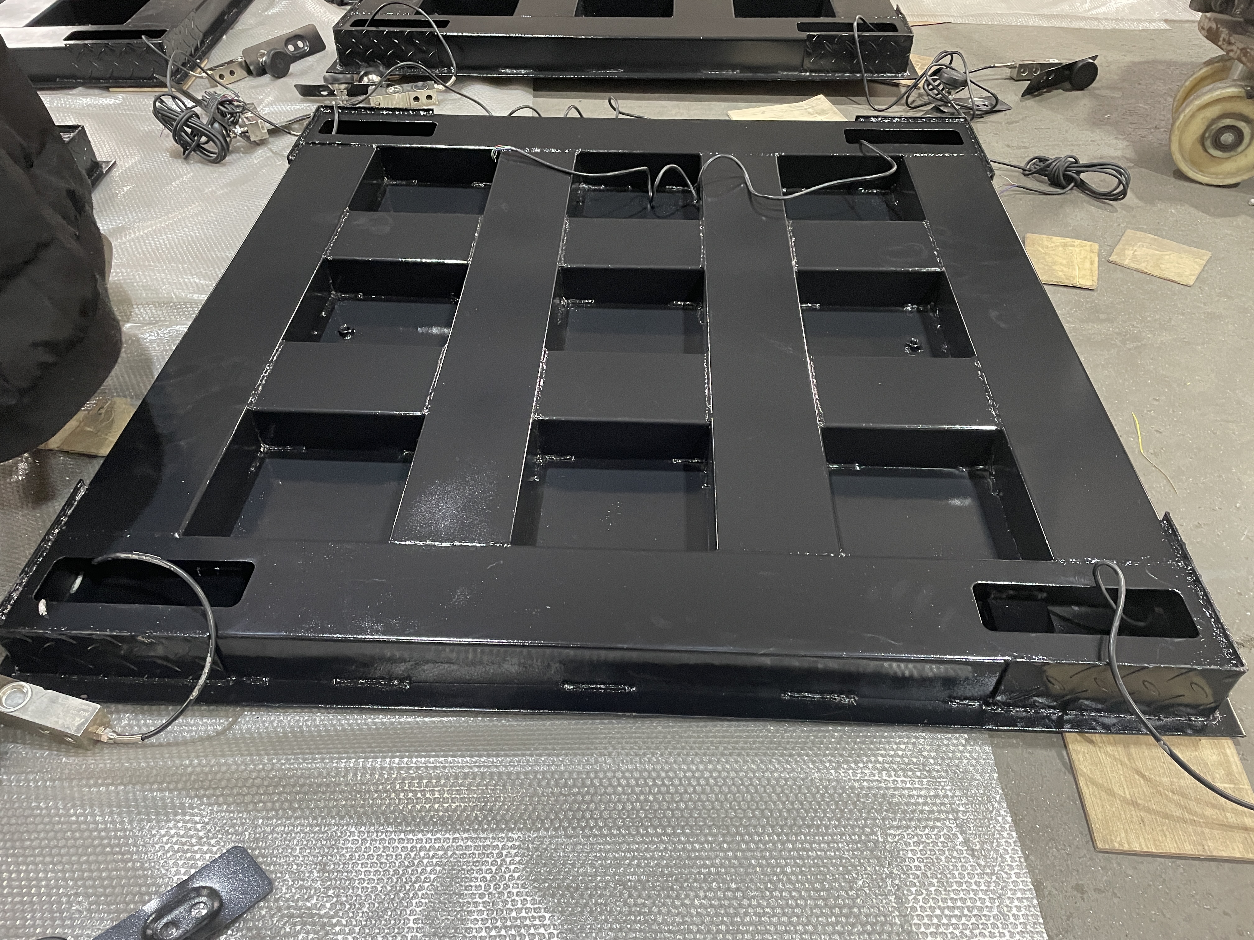 - Khung bàn cân chịu lực gồm 5 thanh U (gồm U160 x 4 thanh và U220 x 1 thanh)