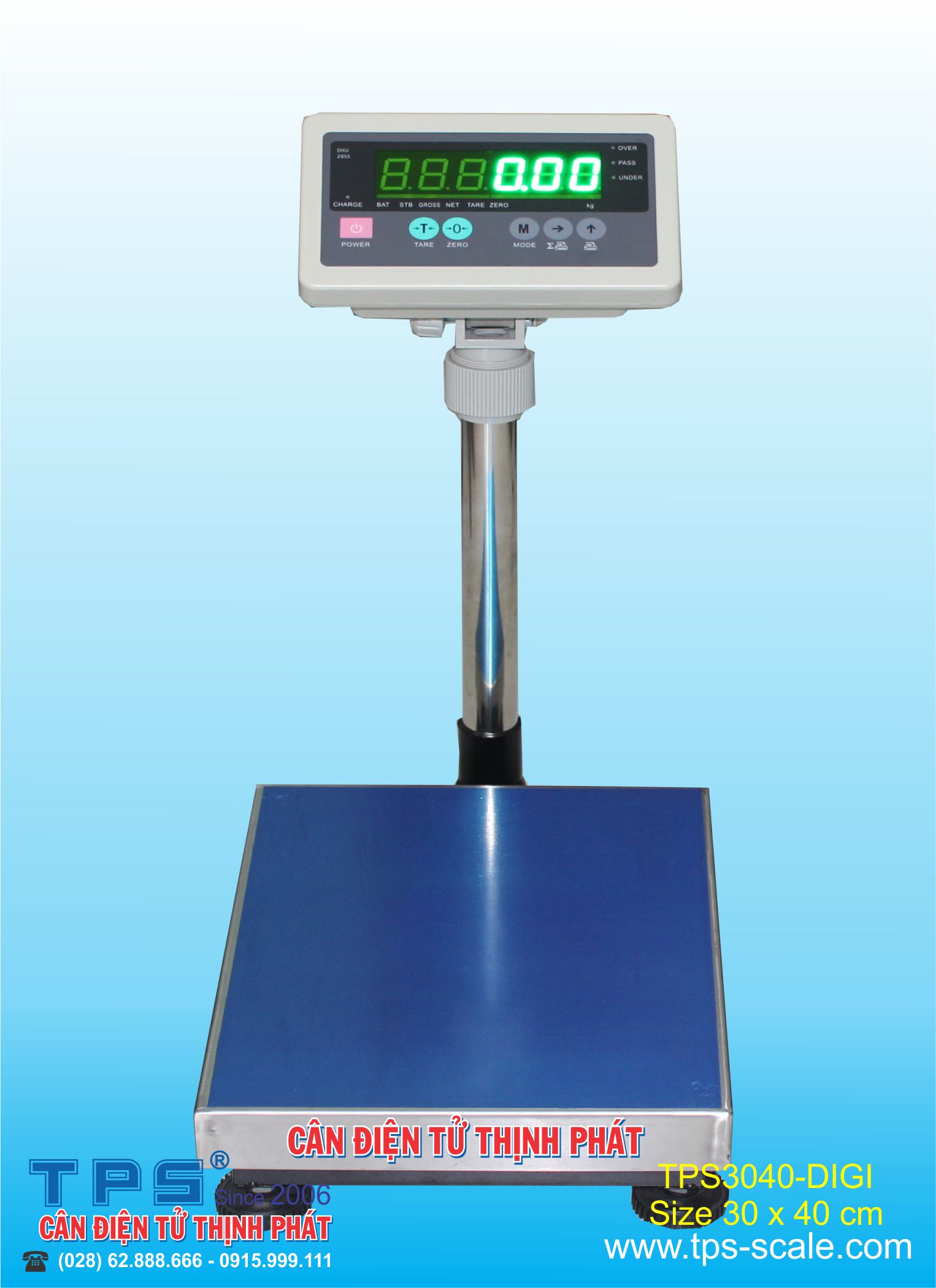 Cân bàn điện tử TPS3040-DIGI Do HÃNG CÂN ĐIỆN TỬ THỊNH PHÁT có trụ sở chính tại số 57 Đường Nguyễn Văn Thương, Phường 25, Quận Bình Thạnh, TP.Hồ Chí Minh lắp ráp và phân phối, quý khách có nhu cầu liên hệ điện thoại (028) 62.888.666 di động có Zalo 0915.999.111 xin cảm ơn.
