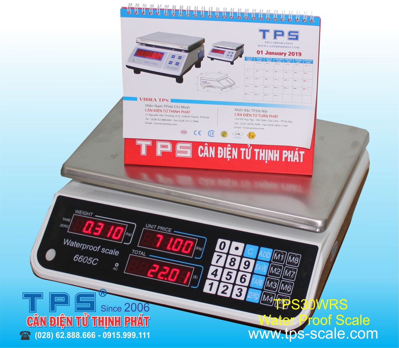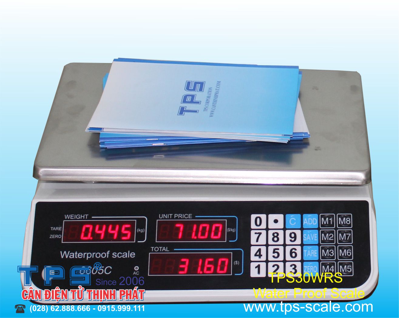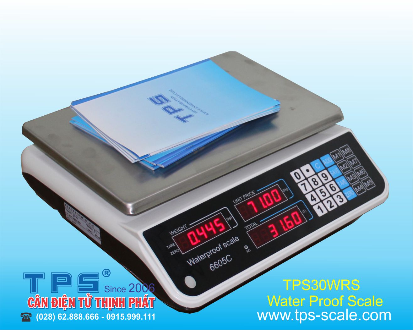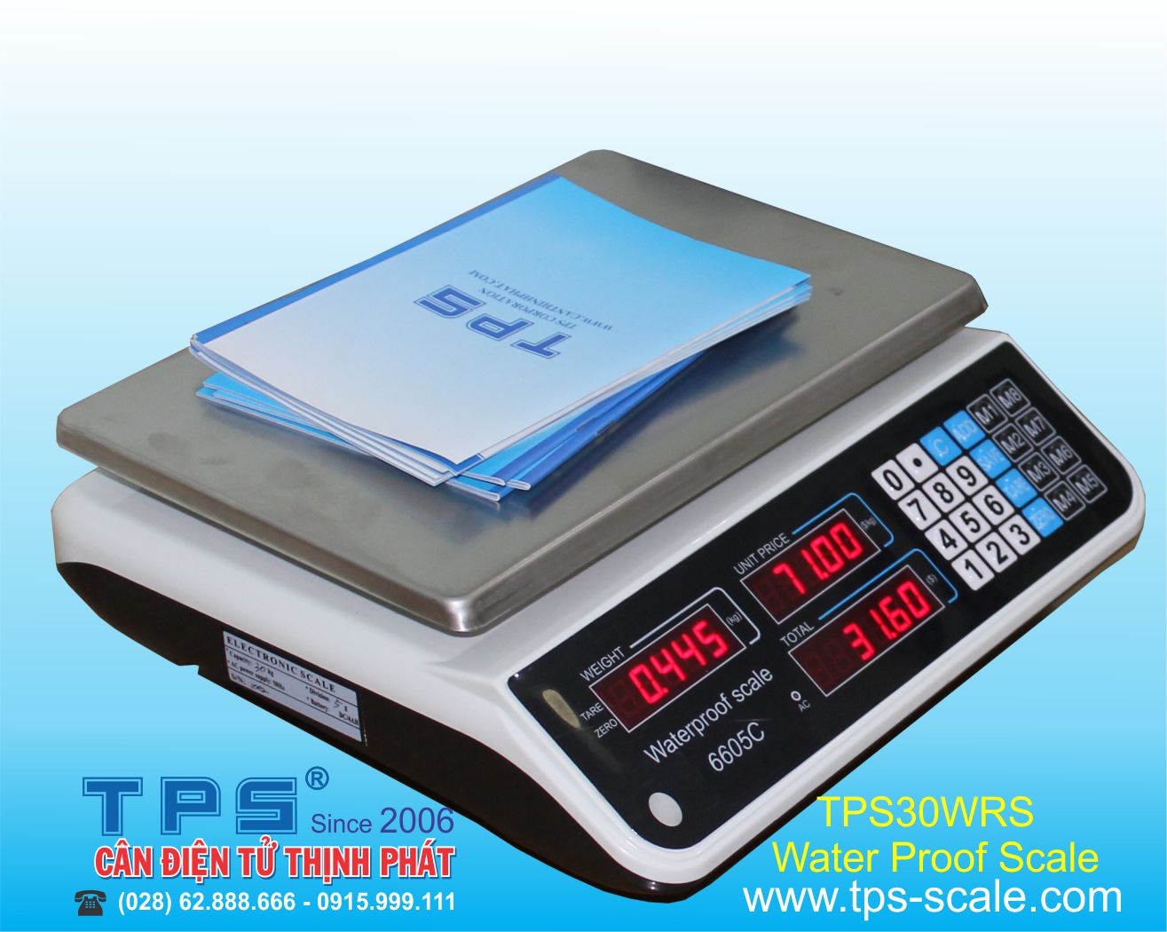 - Cân điện tử TPS30WRS 30kg là mẫu cân tính giá chống nước thông dụng với giá cả hợp lý được sử dụng nhiều tại các của hàng trái cây, các của hàng thịt heo, thịt bò, các hộ kinh doanh, siêu thị, tạp hóa, Màn hình LED số đỏ rõ dễ đọc thời gian ổn định 3 giây.