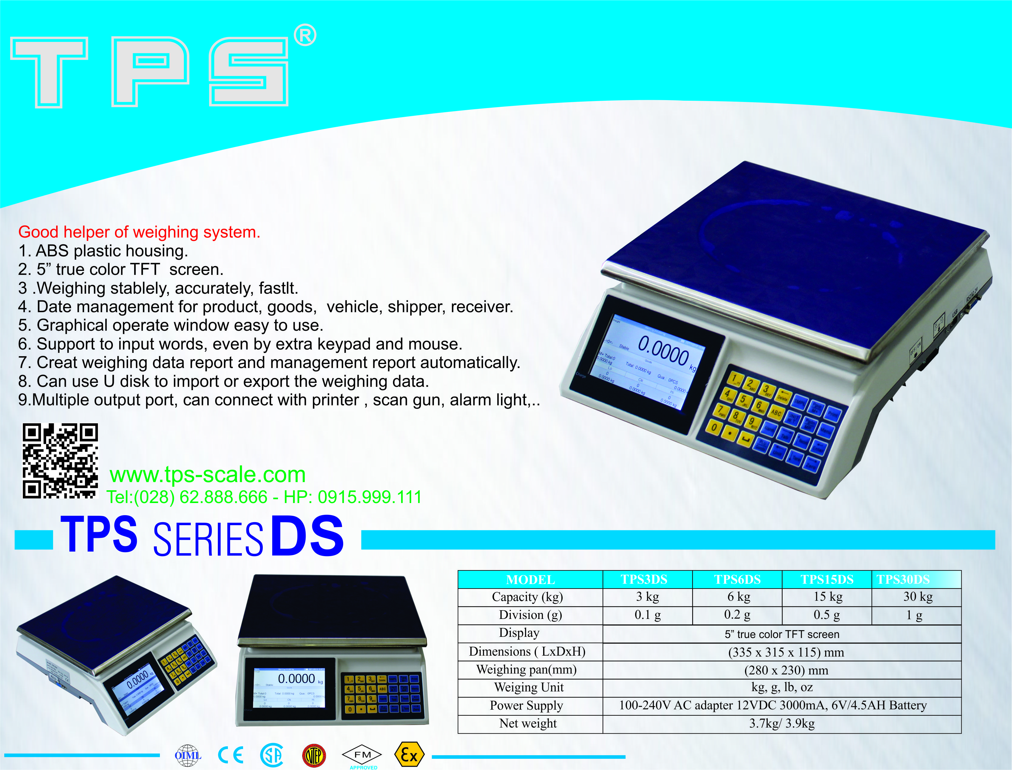 Bảng thông số kỹ thuật cân TPS3DS.