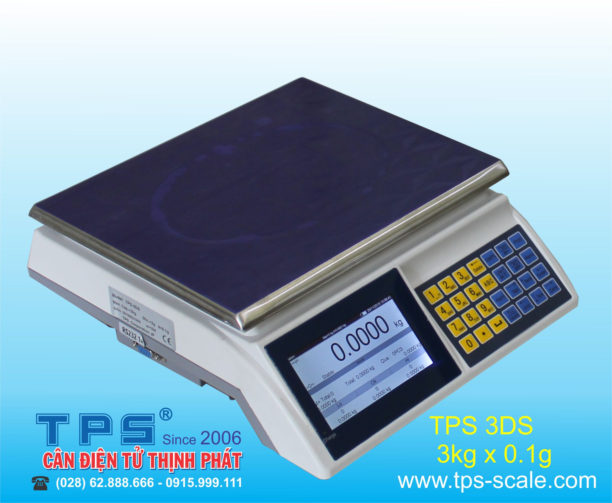 - Sản xuất theo đơn đặt hàng của TPS Corporation, nên khi mở cân sẽ hiển thị chữ "TPS" trước rất dễ nhận diện.