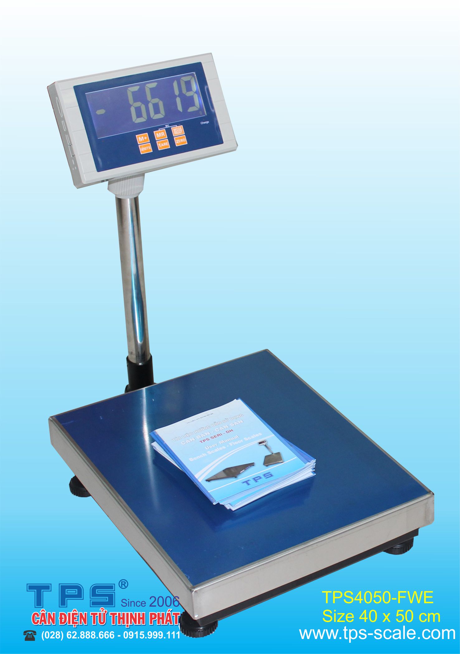 - Cân bàn điện tử TPS4050-FWE Là mẫu cân bàn thông dụng hiện đại do TPS nguyên cứu và lắp ráp phù hợp với thị trường tại Việt Nam, khung bàn cân sử dụng thép chịu lực cao thép vuông ba, được sơn tỉnh điện màu đen bóng chống ăn mòn cao, mặt bàn cân sử dụng inox 304 dày 1 ly dập logo TPS rất dể nhận diện. Cảm ứng lực NA4 do MAVIN sản xuất theo tiêu chuẩn OIMLR60, Bộ chỉ thị TPS FWE do TPS thiết kế và đặt hàng nhà máy sản xuất cho nên sử dụng rất ổn định.