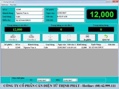 Phần mềm chuyên dụng TPS- Scales chạy trên môi trường Windows bằng tiếng Việt có dấu, được lập trình các nhóm chức năng cơ bản sau: Lưu trữ và quản lý tự động bằng máy vi tính các thông tin, khác hàng, thời gian và khối lượng xuất nhập. In phiếu cân cho từng lần cân, Trong phiếu cân ghi rõ các chi tiết, mã số khách hàng (nhập từ bàn phím) nhân viên vận hành cân, khối lượng tổng, khối lượng tịnh, khối lung trừ bì, thời gian ra vào… Khai báo các thông tin phục vụ muc đích quản lý, thống kê: thống kê chi tiết theo thời gian, theo khách hàng, theo mặt hàng, theo số xe trong một gian đọan nhất định.