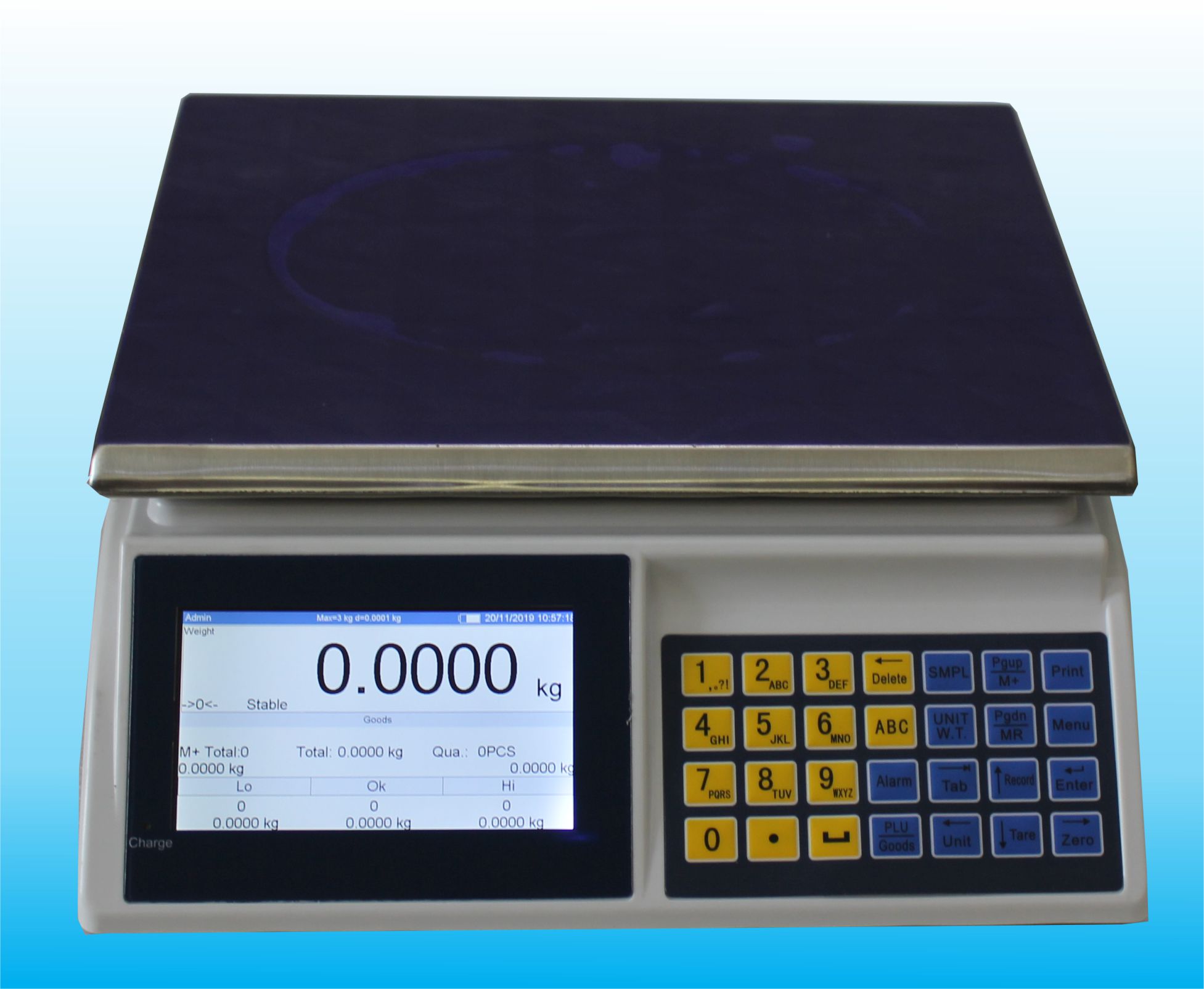- Phím cân: Cân có 28 phím ngoài các phím số từ 0 tới 9 và các phím chức năng như ZERO, TARE, Menu, Print, SMPL, UNIT, UNIT/WT, Enter, Detele, ABC, PLU, Alarm, Tab, Record, Pgdn/MR, Pgdn/M+ .