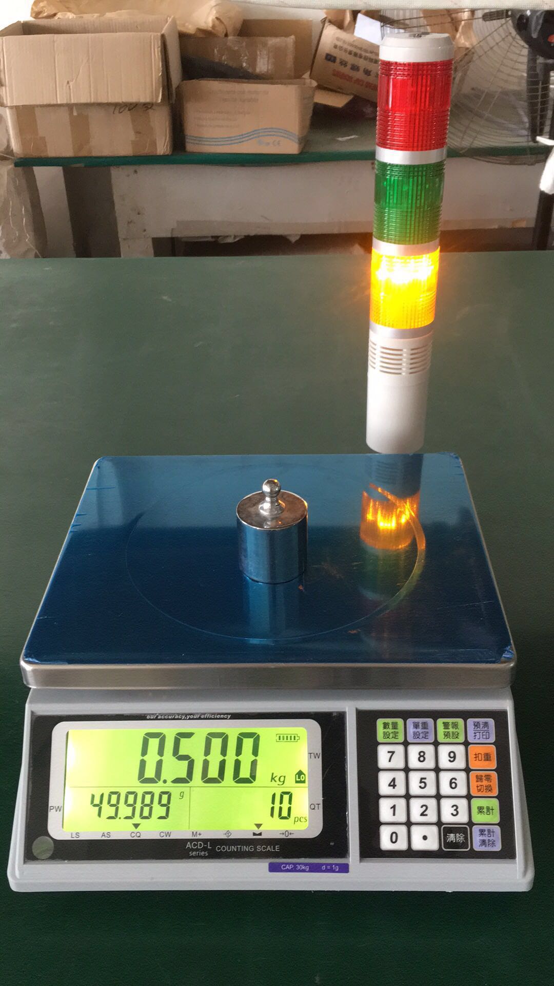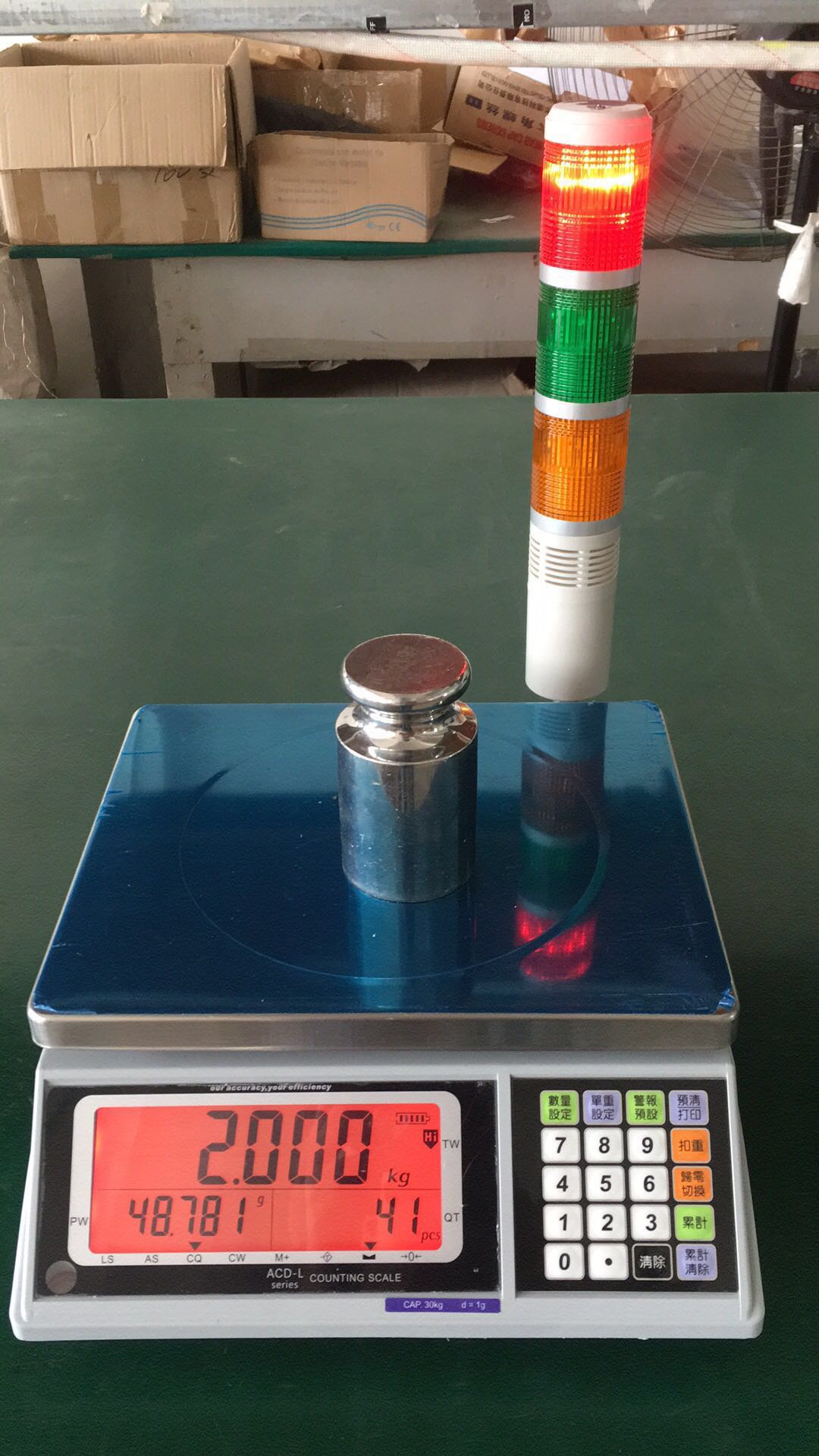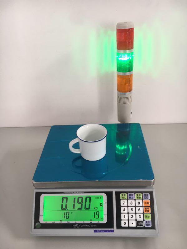 - Kèm đèn cảnh báo 3 màu lắp liền với cân cao 130 mm.