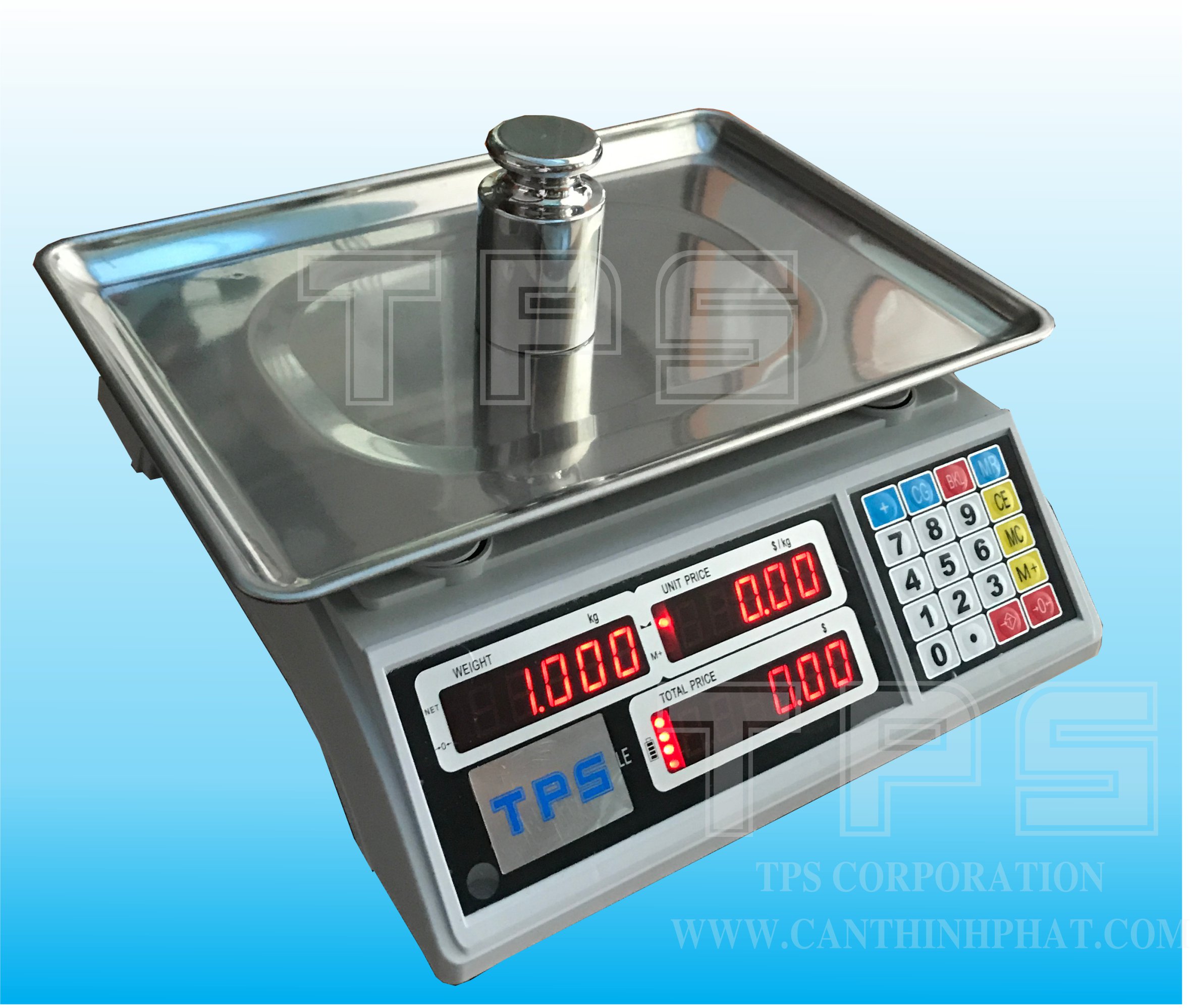 - Phím chức năng: Có 20 phím gồm phím số từ 0 đến 9 (Dùng để nhập giá) và các phím chức khác như zero, trừ bì, xóa, chuyển đổi đơn vị.