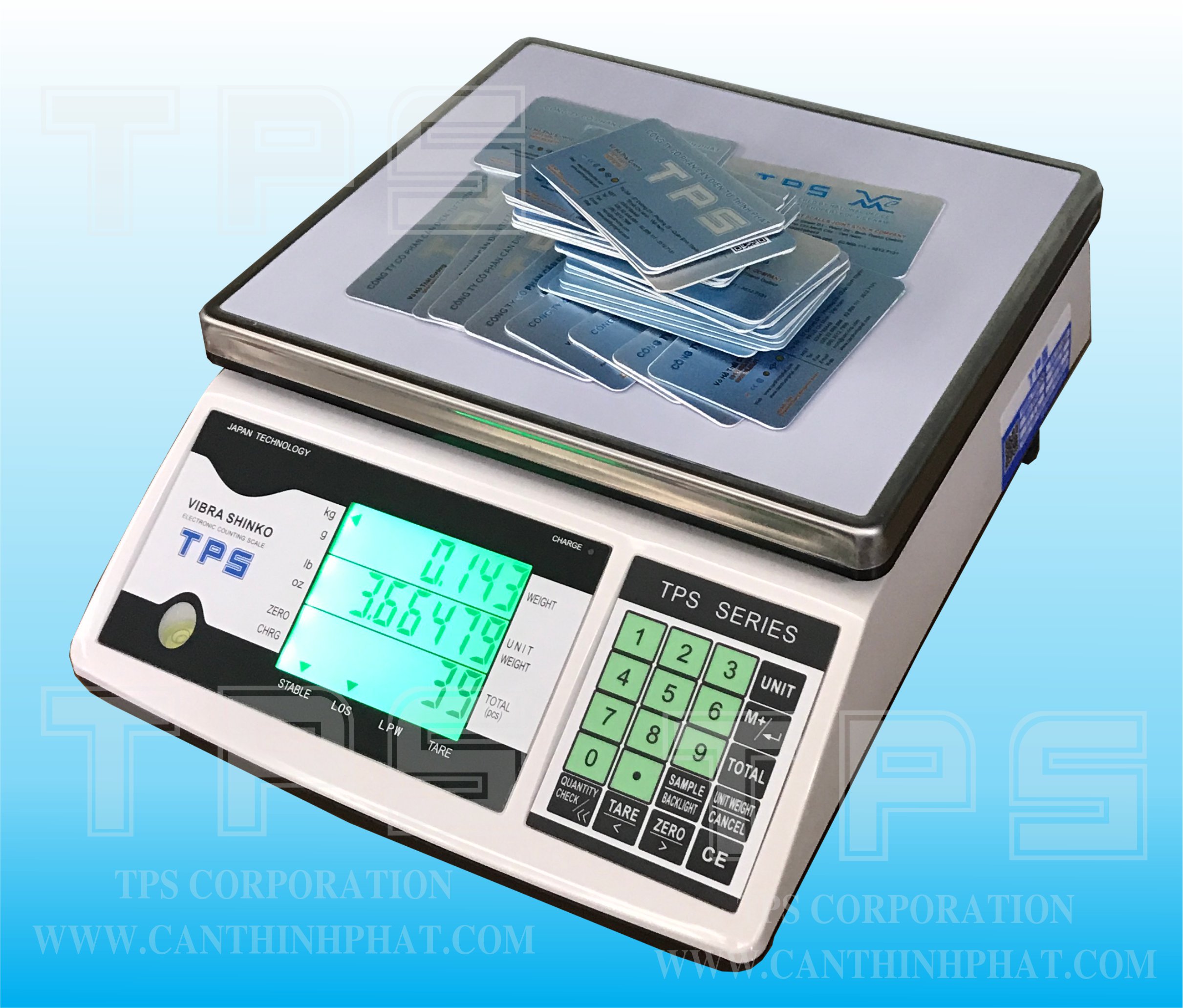 - VIBRA TPS10C là mẫu cân đếm thông dụng với đĩa cân lớn và độ chính xác đến từng g ứng dụng nhiều ngành như, đếm mẫu linh kiện điện tử, các vi mạch điện tử rất nhỏ, nhãn áo, nút, phi áo trong ngành may, tem bảo hành, nhãn giấy, nhãn decal trong ngành in ấn, VIBRA TPS có Bàn phím và màn hình rõ ràng, Cảm ứng lực loadcell nhãn hiệu LAB do LCT sản xuất theo tiêu chuẩn OIMLR60, IP67.