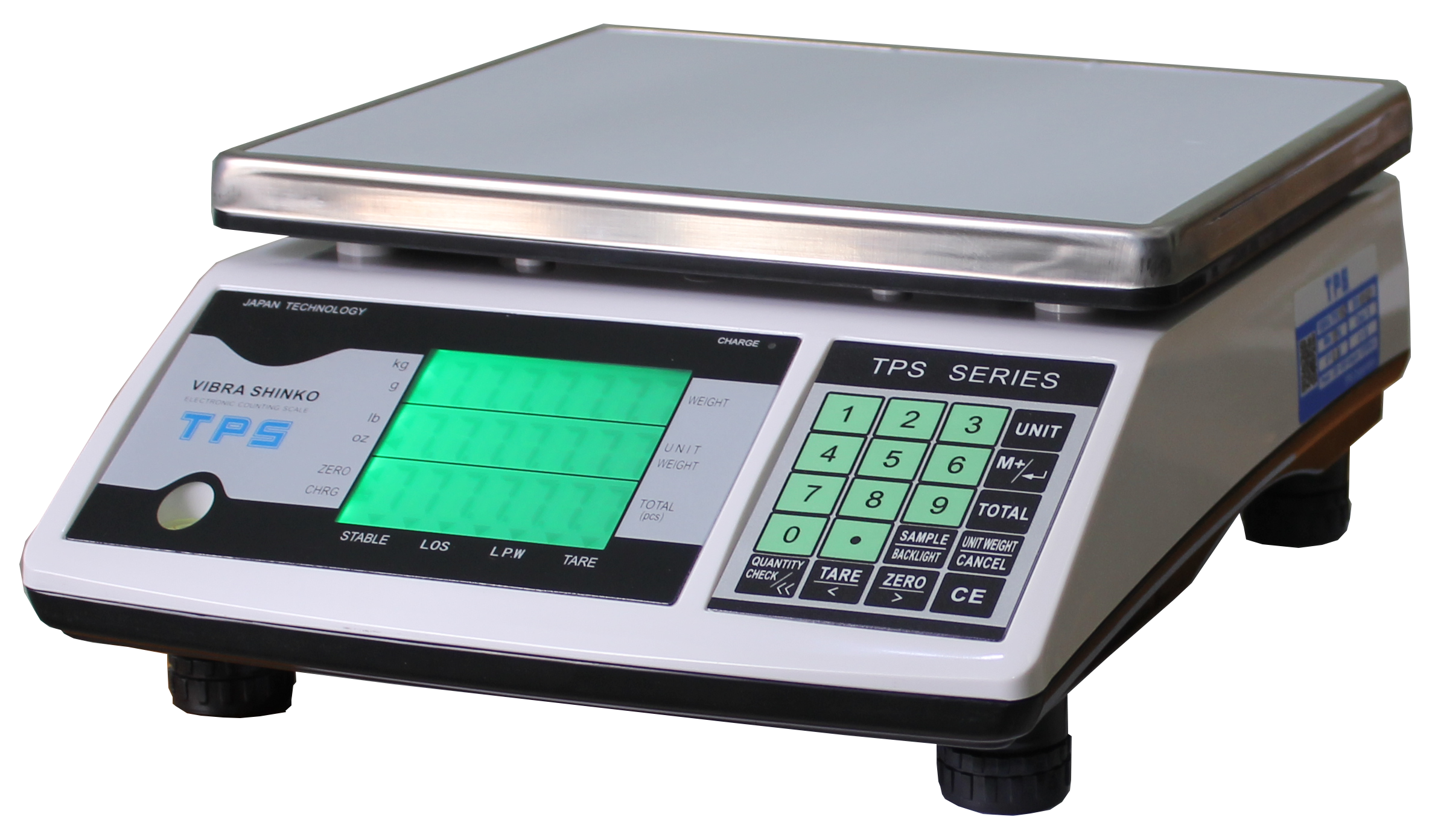 - VIBRA TPS3C là mẫu cân đếm thông dụng với đĩa cân lớn và độ chính xác đến từng g ứng dụng nhiều ngành như, đếm mẫu linh kiện điện tử, các vi mạch điện tử rất nhỏ, nhãn áo, nút, phi áo trong ngành may, tem bảo hành, nhãn giấy, nhãn decal trong ngành in ấn, VIBRA TPS có Bàn phím và màn hình rõ ràng, Cảm ứng lực loadcell nhãn hiệu LAB do LCT sản xuất theo tiêu chuẩn OIMLR60, IP67.